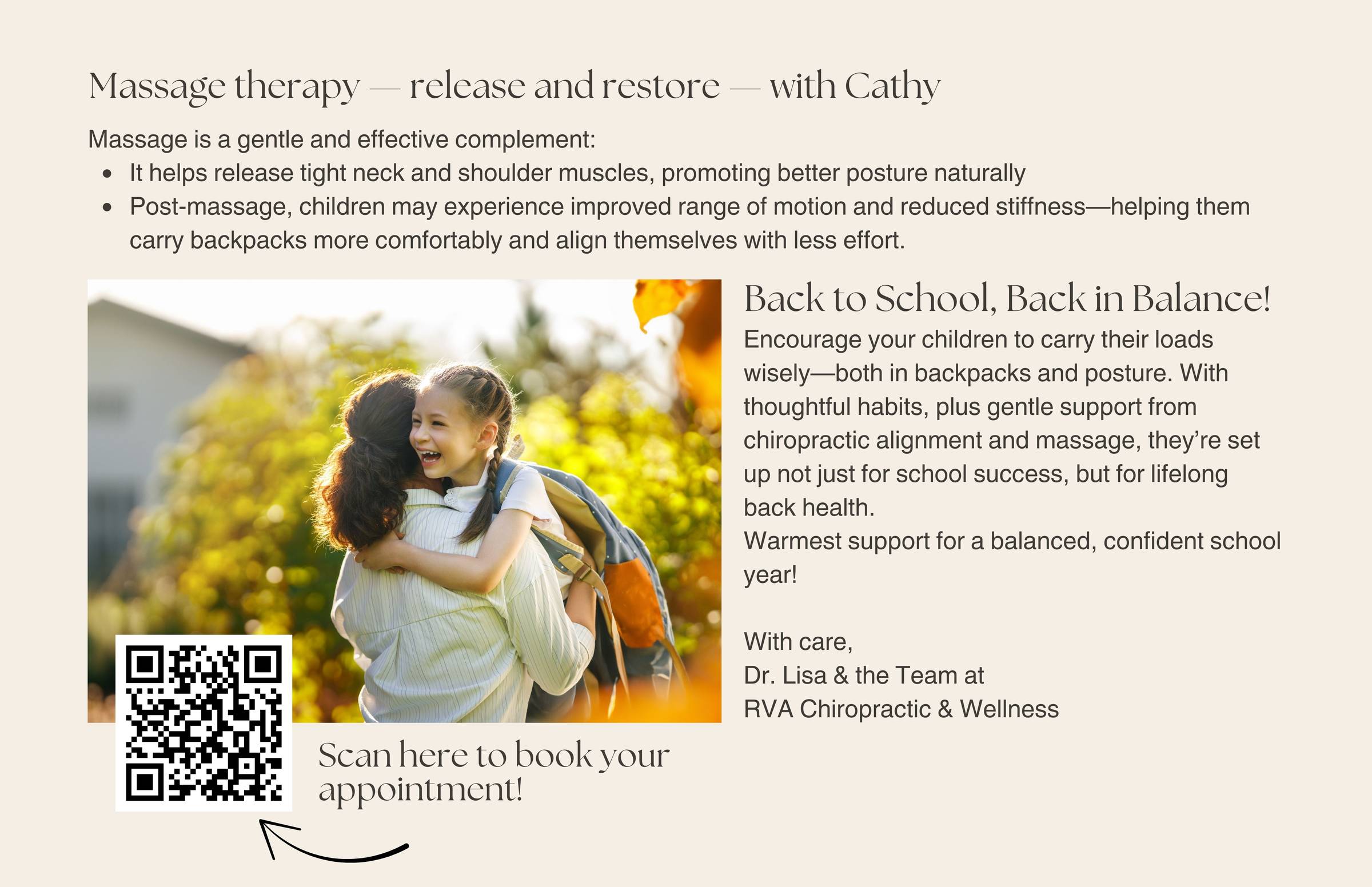 October 24, 2025, Issue #7 Autumn & Winter Wellness: Navigating Family Sleep Patterns As the clocks “fall back” and nights lengthen, many families find themselves struggling with disrupted sleep routines and sluggish mornings. Autumn’s time change and winter’s reduced daylight can throw off our circadian rhythms — affecting adults, children, and babies alike. The good news: small, intentional changes, along with supportive chiropractic and massage therapy care, can help restore balance for...
